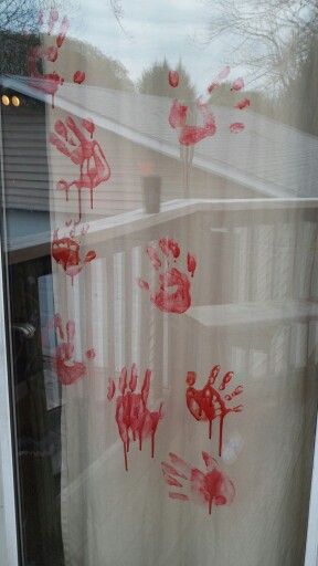 Para esta decoración, sólo debes pintar las manos de los peques con pintura acrílica roja y presionar sus manos sobre las ventanas para dejar huellas sangrientas. Si lo hacen todos los integrantes de la familia quedará un efecto muy original. También podéis usar rotuladores especiales para dibujar arañas, fantasmas u otros elementos terroríficos sobre el cristal.